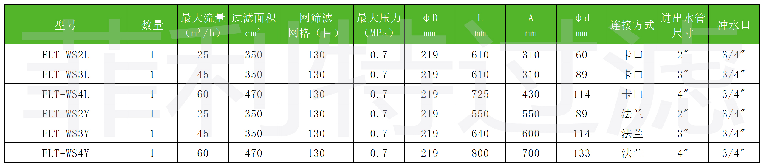 FLT-WS系列網式過濾器用于處理水體中的無機雜質有效,當水流穿過濾網時,大于濾網目數的雜質將被攔截下來,隨著濾網上粘附的雜質不斷增多,濾網前后的壓差也愈來愈大,如果壓差過大,網孔受壓擴張將使一些雜質擠過濾網進入灌溉系統,甚至致使濾網破裂,因此必須采取適當的管理措施,確保濾網前后的壓差保持在允許范圍內,只有通過嚴格選型并在正常條件下運行,網式過濾器才能達到經濟高效的目的。FLT-WS系列網式過濾器在過濾狀態時,雜質被攔截在濾網的外側,當需要沖洗時打開沖洗口的排污閥,高速水流迅速將濾出的雜質沖出過濾器。網式過濾器是利用濾網組成的孔隙,將原水中的泥沙、懸浮物等雜質截留住,由于濾網進行了科學分布,所以濾網對雜質的截留效果很好,出水質量也大大提高