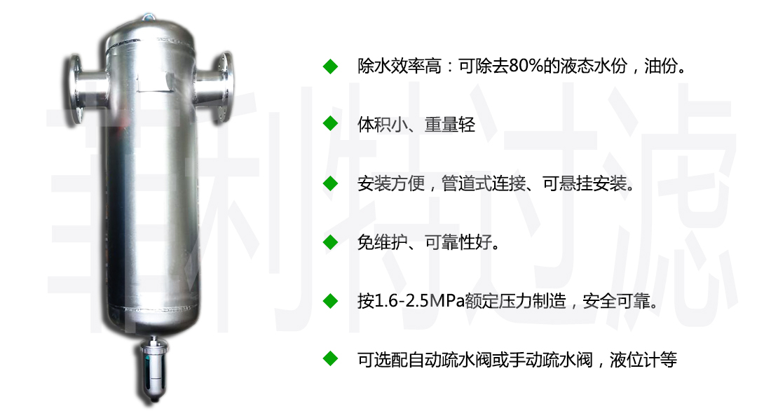 ◆ 空壓機:空壓機配套使用氣水分離器應用非常廣泛,可以選用濾芯式