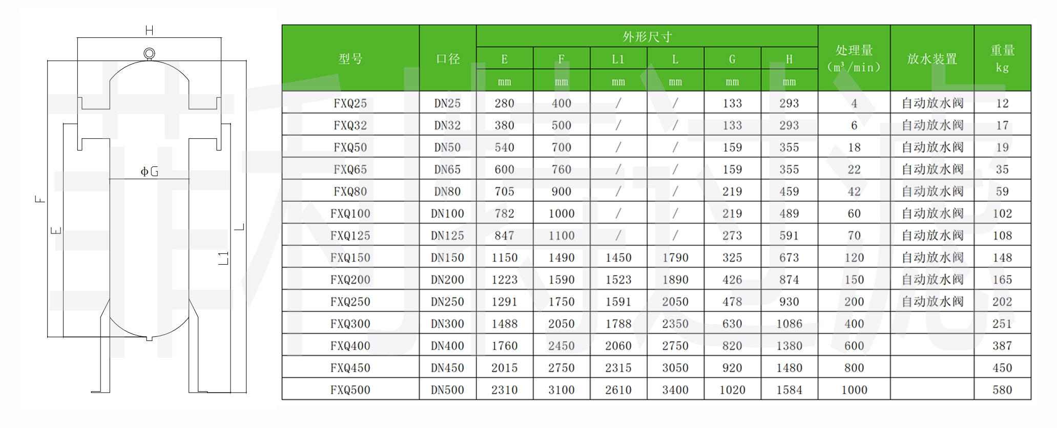 不銹鋼汽水分離器 FXQ系列 汽水分離器為壓力容器結構的碳鋼或不銹鋼設備,目的是除去不能通過疏水閥排掉的懸浮在蒸汽中的水分。汽水分離器必須安裝于水平管線上,排水口垂直向