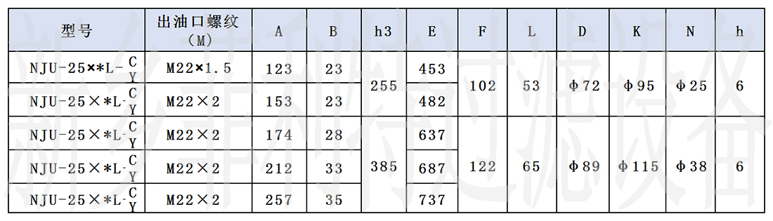 1、NJU-25~160型(對照表一) 2、NJU-250~800型(對照表二)