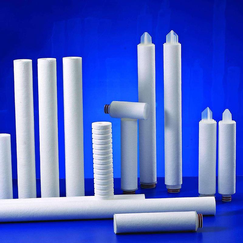 濾芯由聚丙烯超細纖維熱熔纏結制成,不適用任何化學粘合劑,纖維在空間隨機自粘合形成三維微孔結構,布集表面、深層、粗濾于一體,由于纖維和密度在濾芯的直徑方向形成高過濾