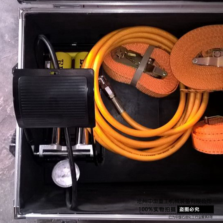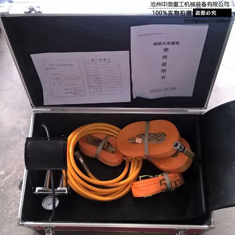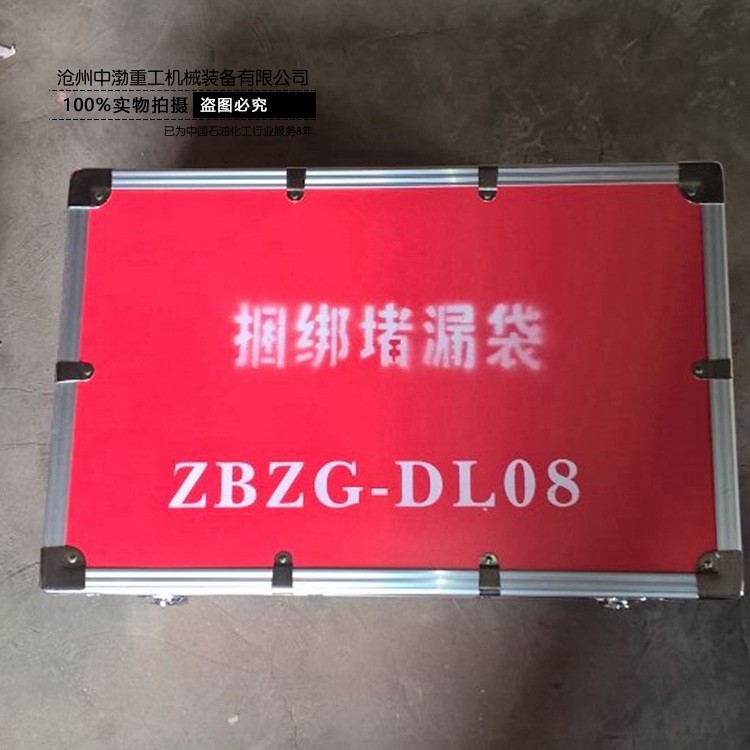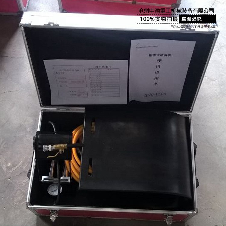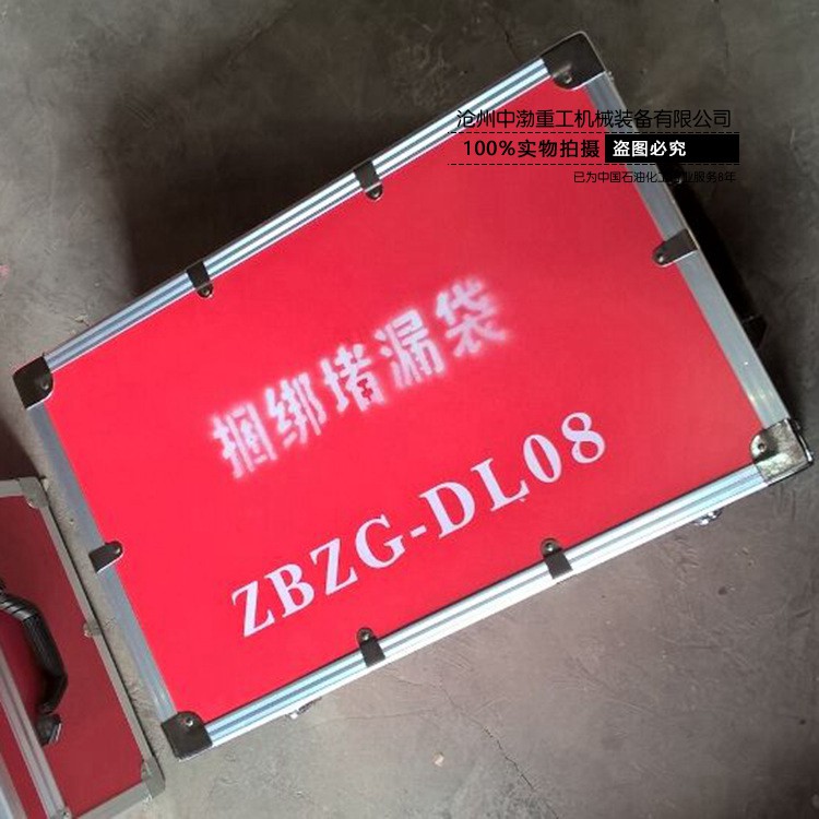 適用于管道堵漏,封堵管道裂縫。其具有耐化學(xué)腐蝕、耐油性好,耐熱性能穩(wěn)定、抗老化等顯著特點(diǎn)。規(guī)格:700X340X10mm和1000X240X10mm 兩種規(guī)格的堵漏袋、堵漏包扎帶、 緊繩器、高壓軟管、快速接頭、腳踏氣泵組件。捆綁堵漏袋技術(shù)參數(shù) 1、系統(tǒng)工作壓力: 0.15MPa 2、環(huán)境溫度: -30℃~+60℃ 3、充氣時(shí)間: ≤15s 4、背 壓: ≤0.1 MPa 5、堵漏包扎帶最大工作壓力: 0.17MP 6、腳踏氣泵最大工作壓力: ≤ 0.5 MPa 7、裝置總重量:≤8.5kg 8、袋體厚度:≤10mm 9、適用封堵范圍: a、Ф50mm~Ф200mm的管道 b、裂縫長(zhǎng)度小于120mm的容器。廣泛應(yīng)用于消防、石化、電力等系統(tǒng)搶險(xiǎn)救援,專用堵漏器材