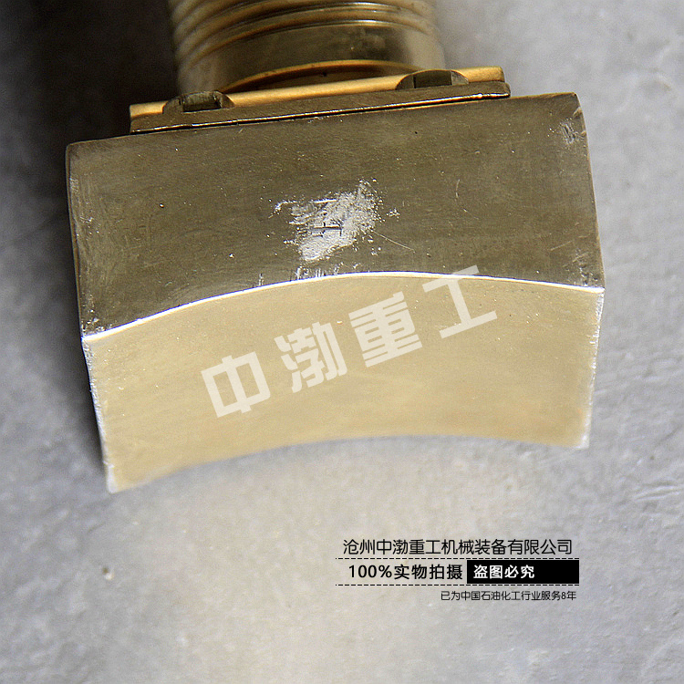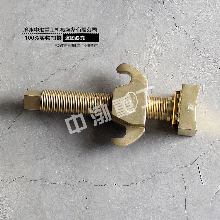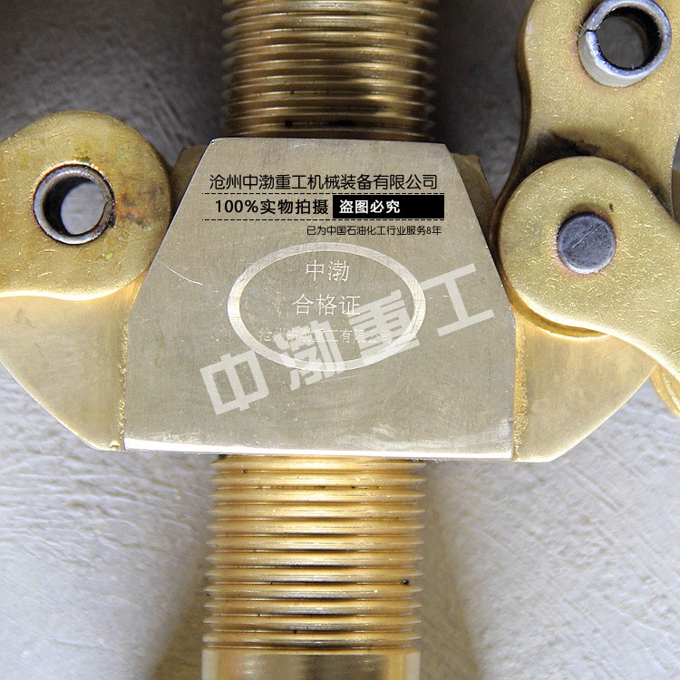 防爆鏈子鉗由鋸齒形螺桿,鋸齒形鉤舌、鏈條、管鉗手柄等組成,鋸齒形螺桿由螺桿銷(xiāo)為軸心,固定在管鉗手柄設(shè)有凹槽的預(yù)留孔中;鋸齒形鉤舌設(shè)有鋸齒和鉤舌兩部分。