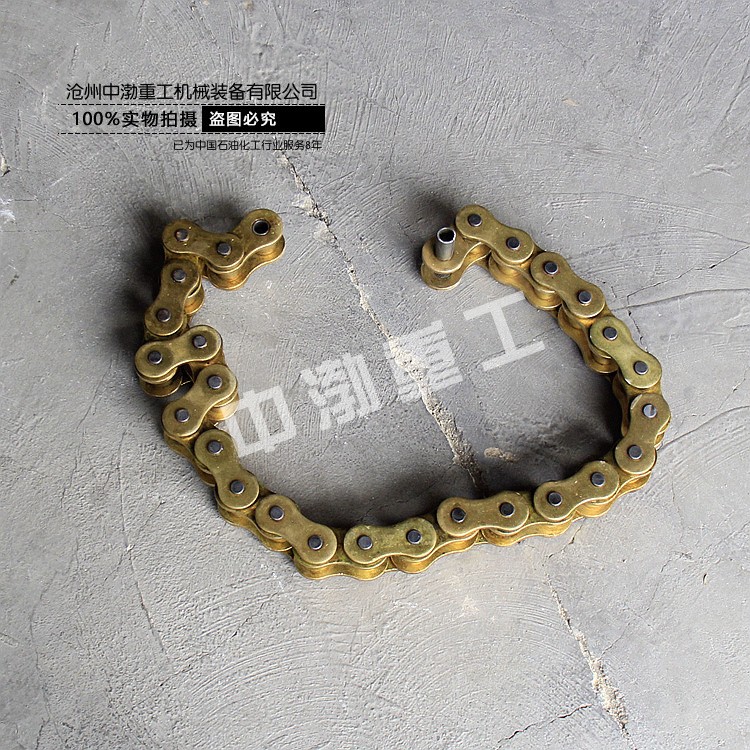 防爆鏈子鉗其包含鉗柄和一端與鉗柄鉸接的鏈條,鉗柄的前端設(shè)有與鏈條嚙合的牙。進(jìn)一步地,鏈條通過(guò)聯(lián)結(jié)板與鉗柄鉸接,即鏈條的一端與聯(lián)結(jié)板的一端鉸接,聯(lián)結(jié)板的另一端與鉗柄鉸接。