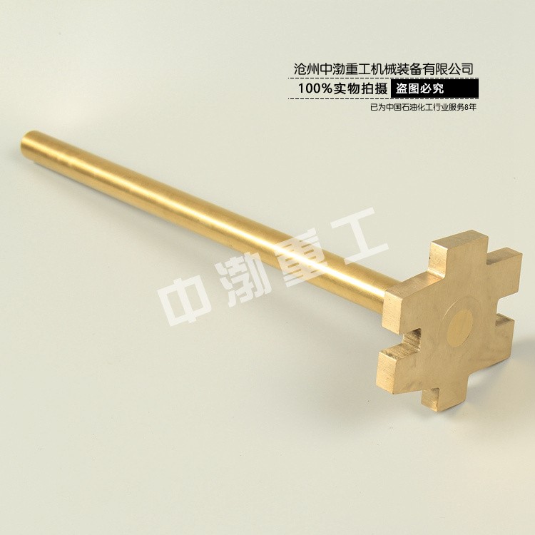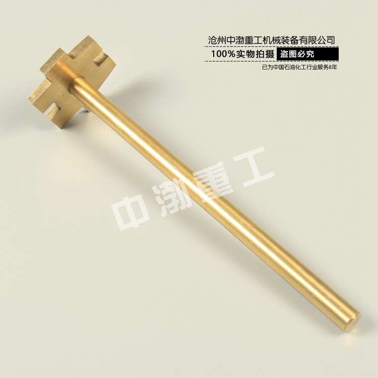 防爆單頭開桶扳手材質(zhì)以鈹青銅和鋁青銅為原料,鈹青銅合金、鋁青銅合金在撞擊或磨擦時不發(fā)生火花,十分適合用來制造在易爆、易燃、強磁及腐蝕性場合下使用的安全工具。 BeA-20C合金在含30%的氧或6.5-10%甲烷空氧中承受561IJ的沖擊能,沖擊20次,都未發(fā)生火花和燃燒。