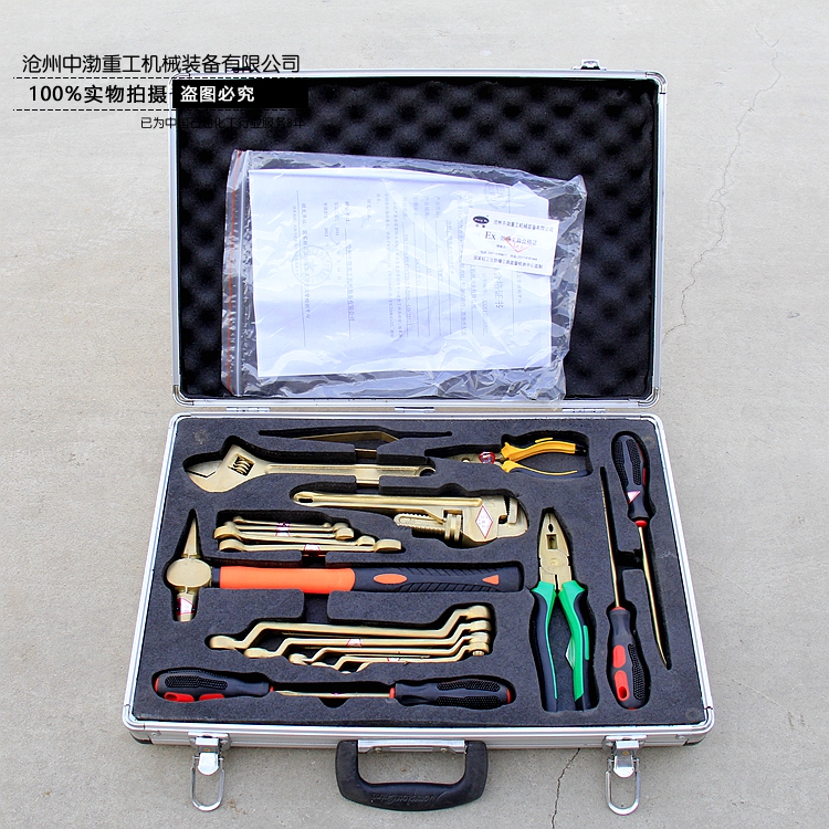 公司生產(chǎn)的防爆工具箱種類齊全,包括:加油站用組合工具箱、油庫用組合工具箱、天然氣用組合工具箱、礦山搶險用組合工具箱、檢維修用組合工具箱、成品油計量工具箱等。  工具箱規(guī)格:7件套、10件套、12件套、16件套、24件套、30件套、32件套、36件套、42件套、50件套、56件套、100件套等。公司還可以根據(jù)客戶的實際工作需要組合常用的防爆工具套裝。   公司生產(chǎn)的防爆工具有400余個系列近萬種規(guī)格。該產(chǎn)品能有效的防止工具與工作物相互摩擦、撞擊時產(chǎn)生的可燃性爆炸,確保財產(chǎn)和人身安全。廣泛用于石油、化工、礦山、防恐怖、防磁場、煤礦、采氣、油氣管道、發(fā)電、冶金、航空、儲運、制藥、制氣、塑料、化纖、皮革、煙火、爆竹等行業(yè)。
