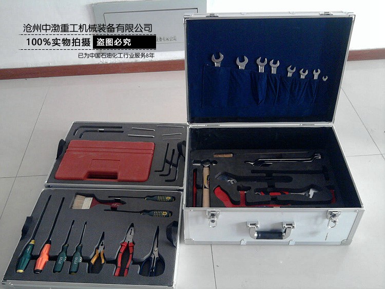棧橋工具箱配置有盒裝套筒扳手、活扳手、雙頭梅花扳手、雙頭呆扳手、圓頭錘、管鉗、克絲鉗、尖嘴鉗、螺絲刀、鏨子等常用工具,同時配備了內六角扳手,開桶扳手,手鋸,毛刷,剪刀,銼刀等工具,使棧橋工具箱功能更為豐富,完全滿足石油棧橋安裝和維護時的作業(yè)需要。棧橋工具箱配置的工具都為防爆工具,保證工具在使用過程中與其他設備和工件碰撞時不產(chǎn)生機械火花,不會引燃正在裝卸的成品油和石油棧橋周圍的油氣混合物,保證棧橋上作業(yè)的安全。